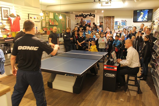 Så roligt att träffa alla unga pingisfans! Den här killen ska bli proffs när han blir stor!