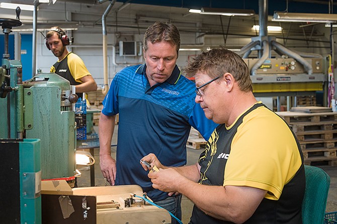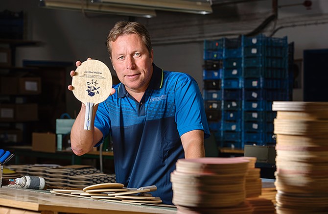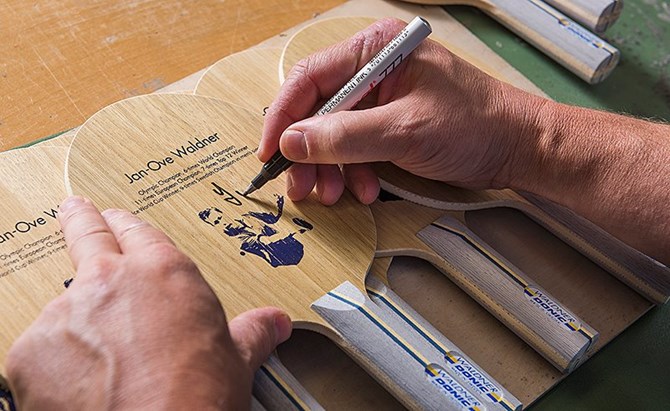Besökte min sponsor Donic för att signera specialgjorda racketar inför OS.