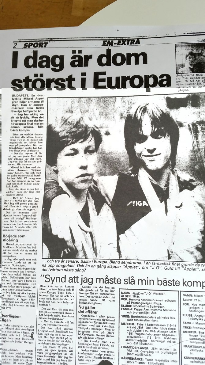 Tittade igenom gamla bilder & hittade den här på mig & Jörgen Persson. Det är från Ungdoms SM i Stockholm 1981. Jag vann med siffrorna 2-1 i set :)