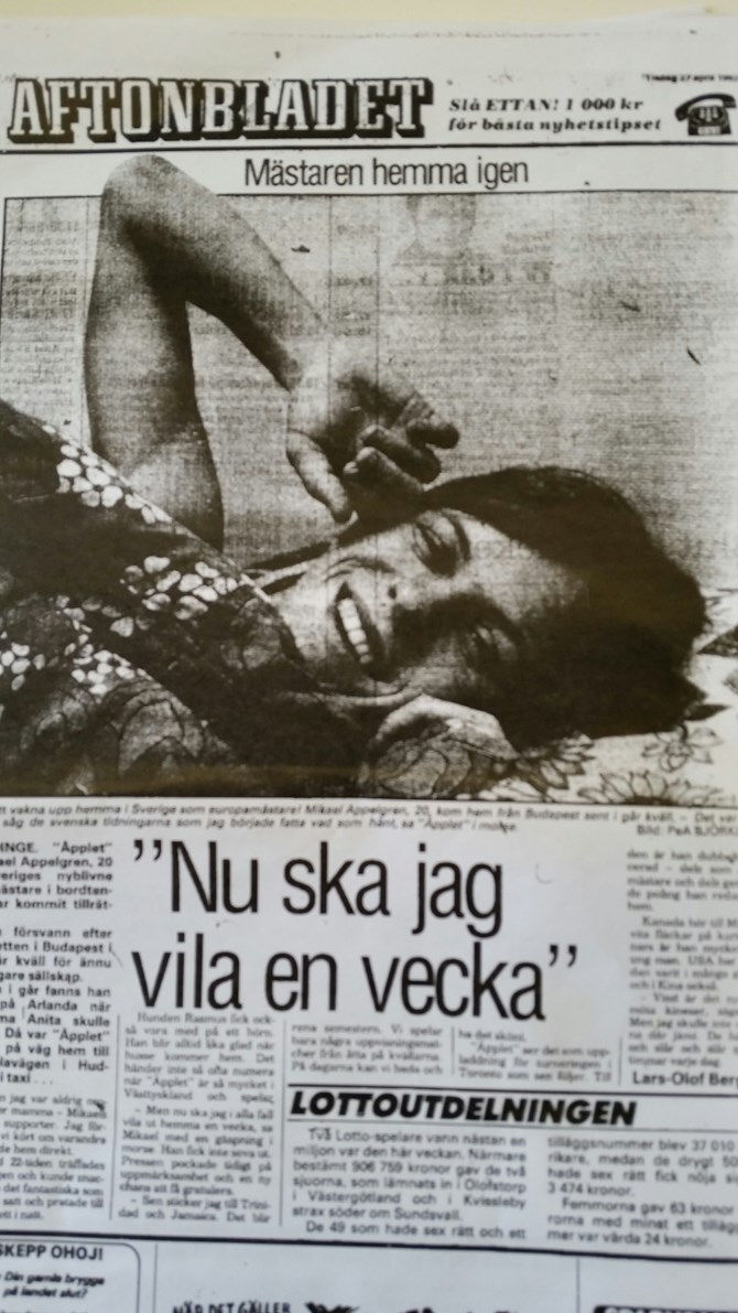 Idag var det matchdag. Tror inte jag spelat så här inspirerat och med sådant självförtroende på länge. Vann idag mot skicklige Fred Åkerström, nuvarande svensk mästare med 11-4, 11-4 , 11-4. Bara tolv förlorade bollar! Och snart bär det av till Kina för lanseringen av frimärket…